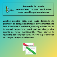 Nouvel inspecteur pour toute demande de permis et de dérogation mineure.